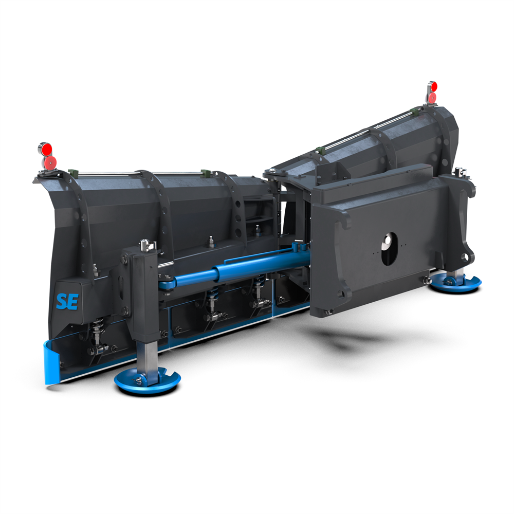 The V-snowplough from SE Equipment is a high-performance equipment designed for efficient and reliable snow clearing with mid-sized wheel loaders. With a working width of 2800 mm and an L30 coupling, it is especially well-suited for clearing large areas such as industrial yards, parking lots, and wide roads.