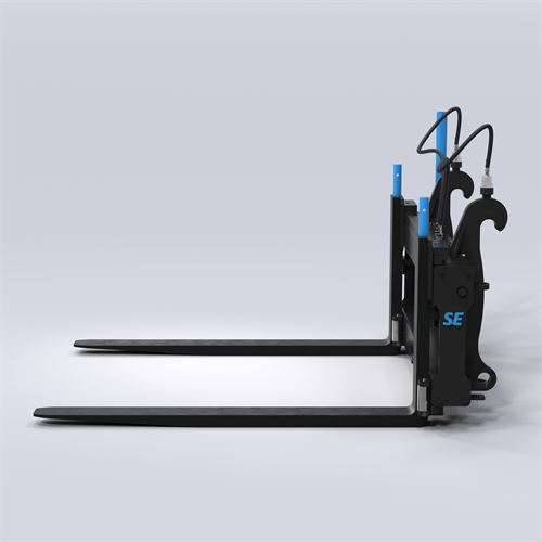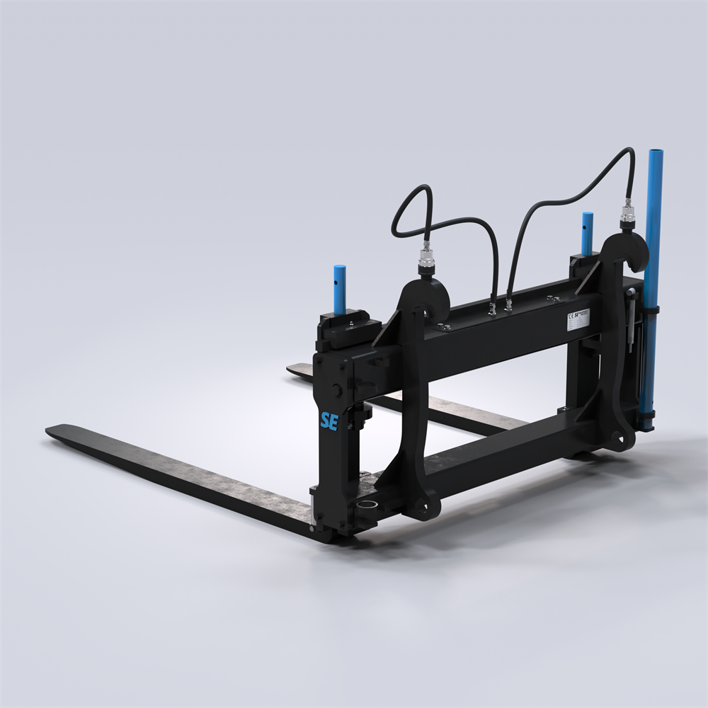 SE Equipments hydrauliska gaffelställ för hjullastare är utvecklat för att ge dig maximal kontroll och effektivitet vid lyft av pallgods och material i trånga utrymmen. Med hydraulisk gaffelspridning justerar du enkelt gaffelbredden direkt från förarplatsen – utan att lämna hytten. Den är särskilt framtagen för Stora BM-maskiner och klarar en lyftkapacitet på 5000 kg. Med en rambredd på 1500 mm och en kraftfull gaffeldimension på 125x50x1600 mm är detta ett starkt redskap. Den hydrauliska spridningen har ett justerbart mått på 160–1110 mm, vilket gör det enkelt att hantera både smala och breda laster. Konstruktionen erbjuder även utmärkt genomsikt från förarplatsen – en avgörande detalj för säker och exakt hantering.