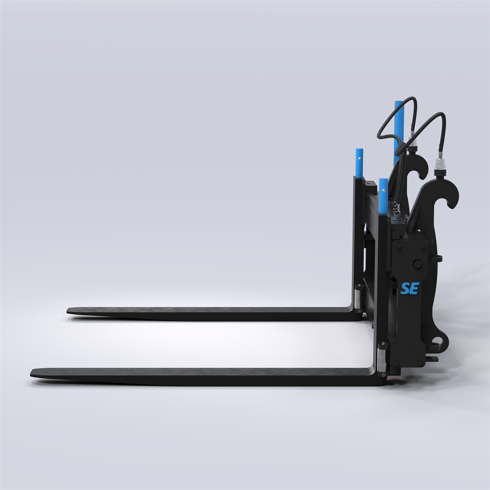 - Hydraulisk gaffelspridning – anpassa bredden snabbt och enkelt