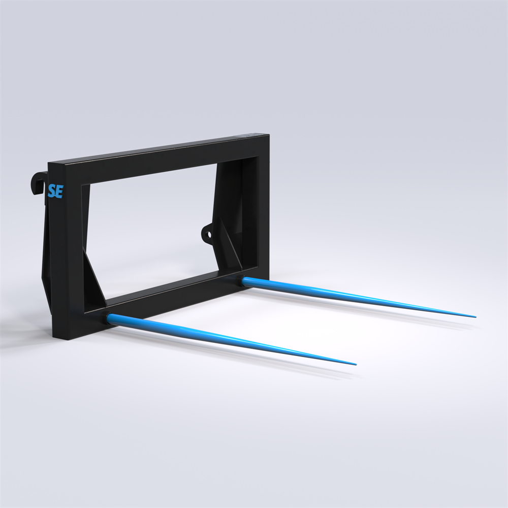 SE Equipment erbjuder ett balspjut för traktor med SMS-fäste, det perfekta verktyget för effektiv hantering av oplasterade rundbalar. Med sina strategiskt placerade spjut, sida/sida, får du ett maskinredskap som garanterar säker och stabil hantering av rundbalar under många år.